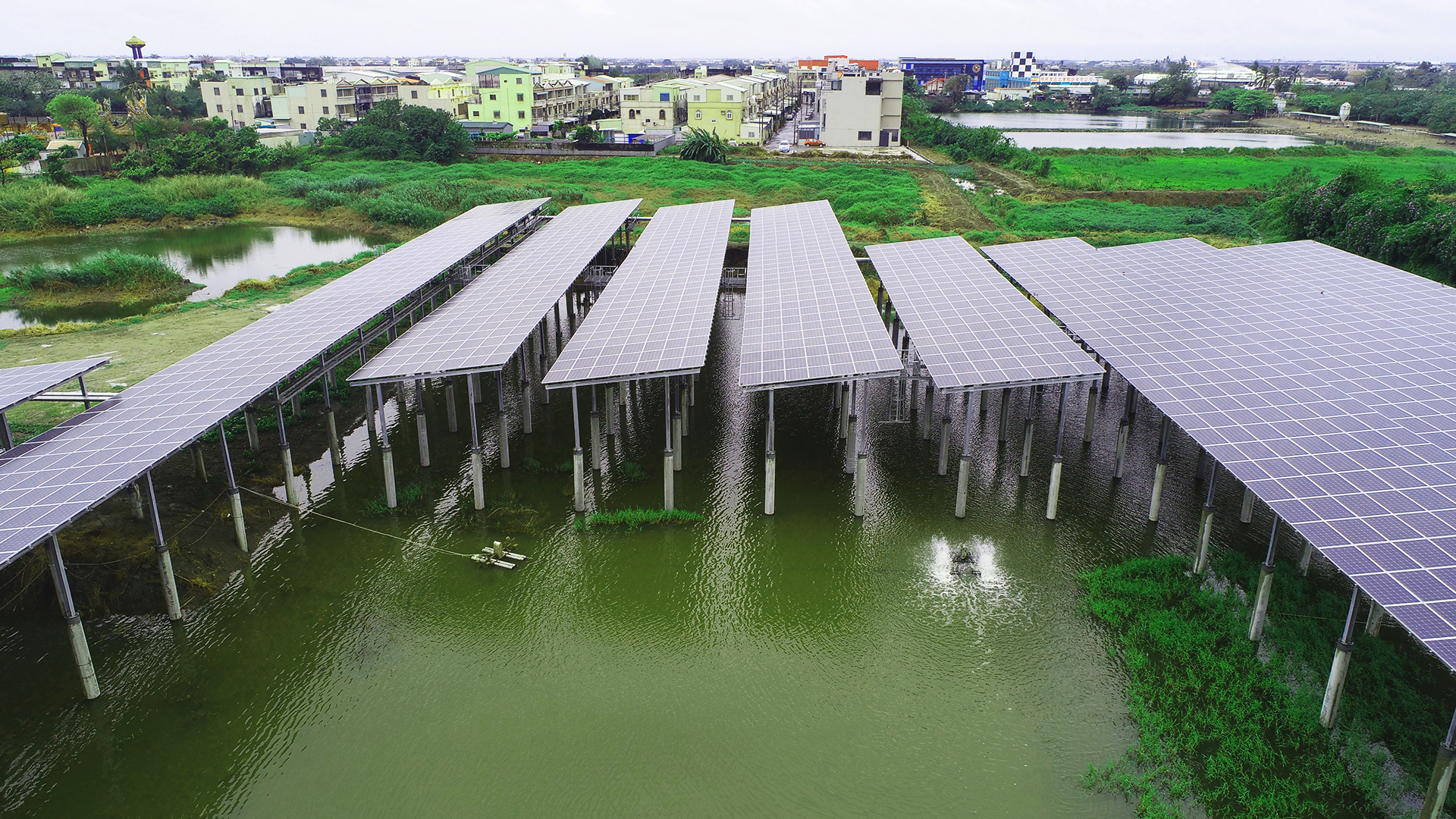 嘉義仲駿魚塭為全台首例漁電共生之魚塭。