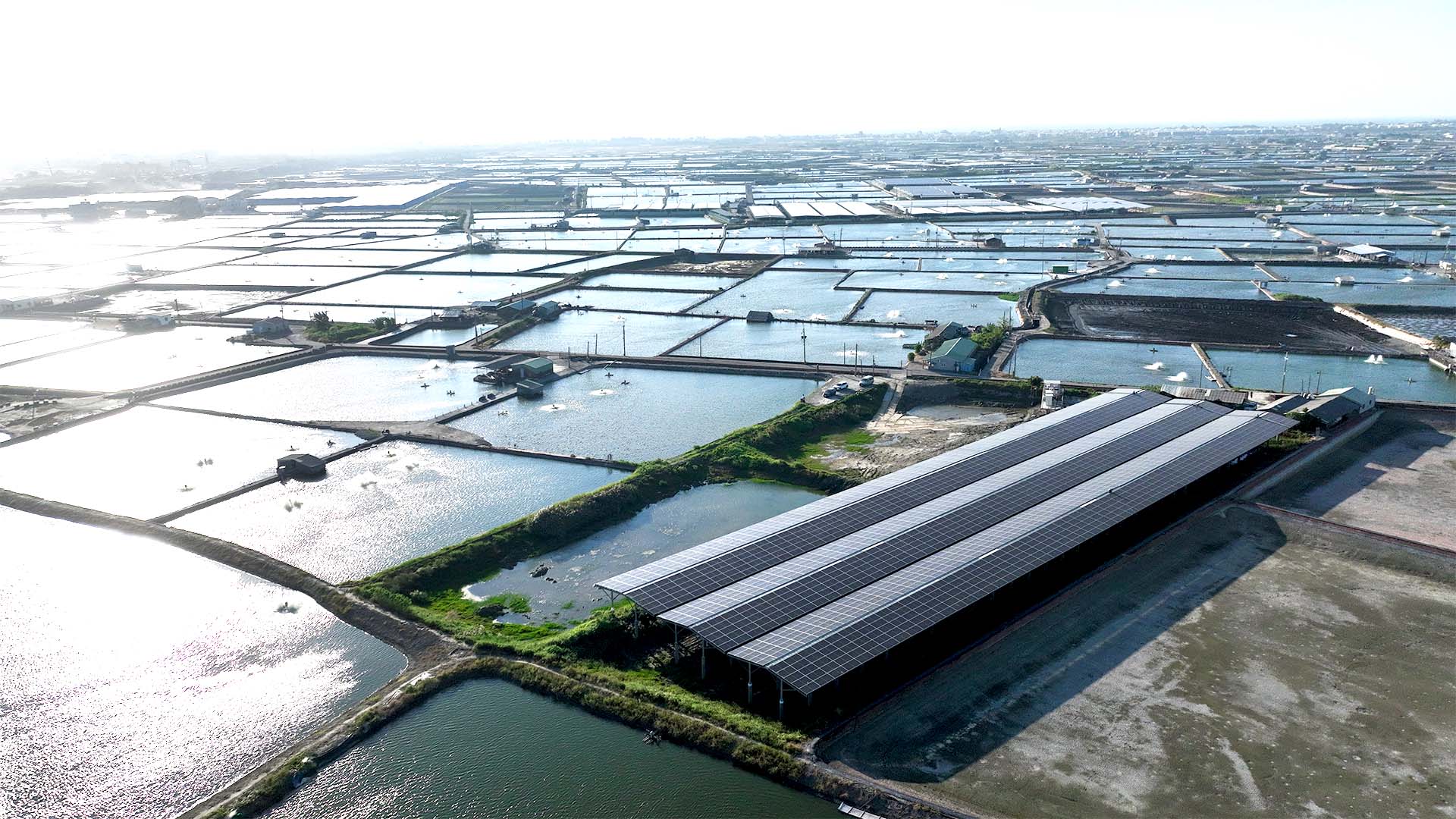 漁電共生結合漁塭與太陽能,一地兩用,且優化養殖環境,本案場位於路竹/湖內,並創造了超過兩千個工作機會,併網後,每年發電量將足以供應一萬戶家庭的用電需求。
