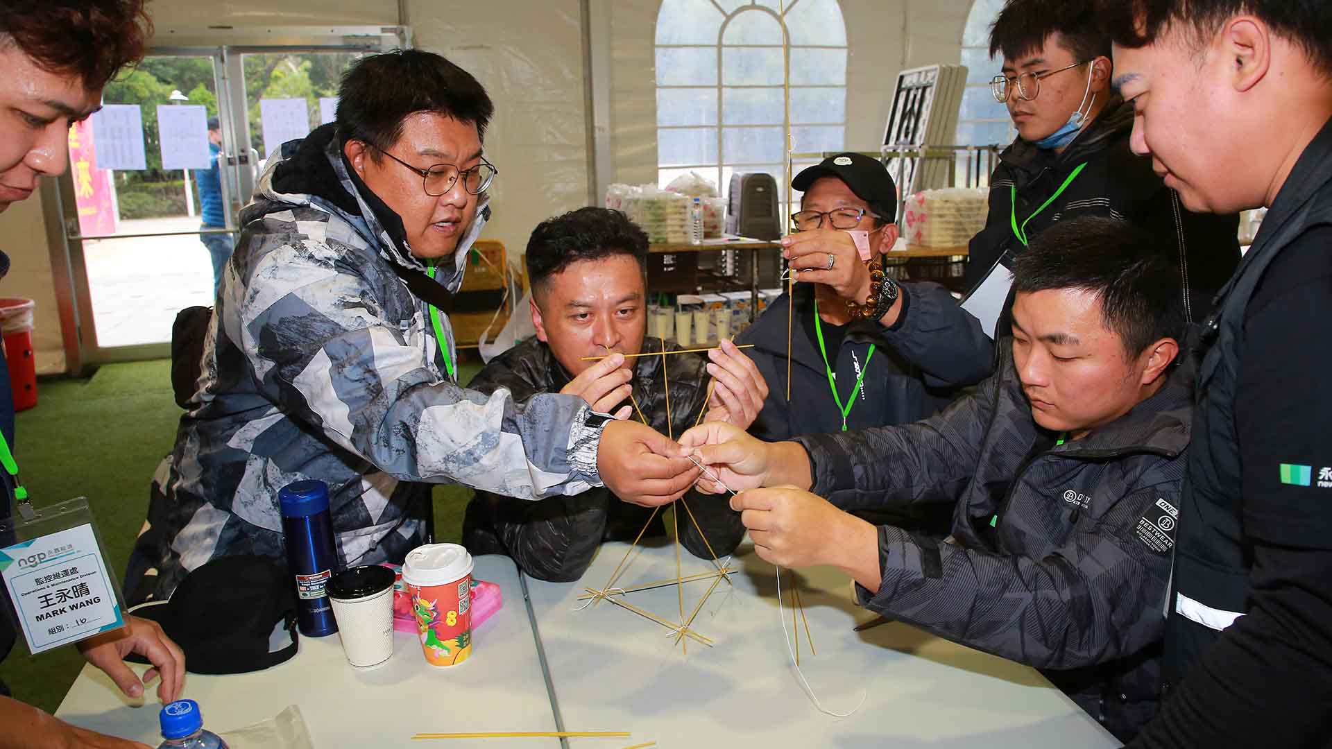 在開場的共識討論中,我們展開了一場對話,每位成員都熱情展現自己的優勢,分享對團隊貢獻的想法。在擁有共同目標的指引下,每個小隊的能量都達到了前所未有的高度。我們也進行了「棉花糖塔挑戰」 -透過設定目標、實施達成、反思,再次挑戰,經過兩輪的建塔,團隊成員展現了創意,成功協作,達到了卓越的團隊合作。
