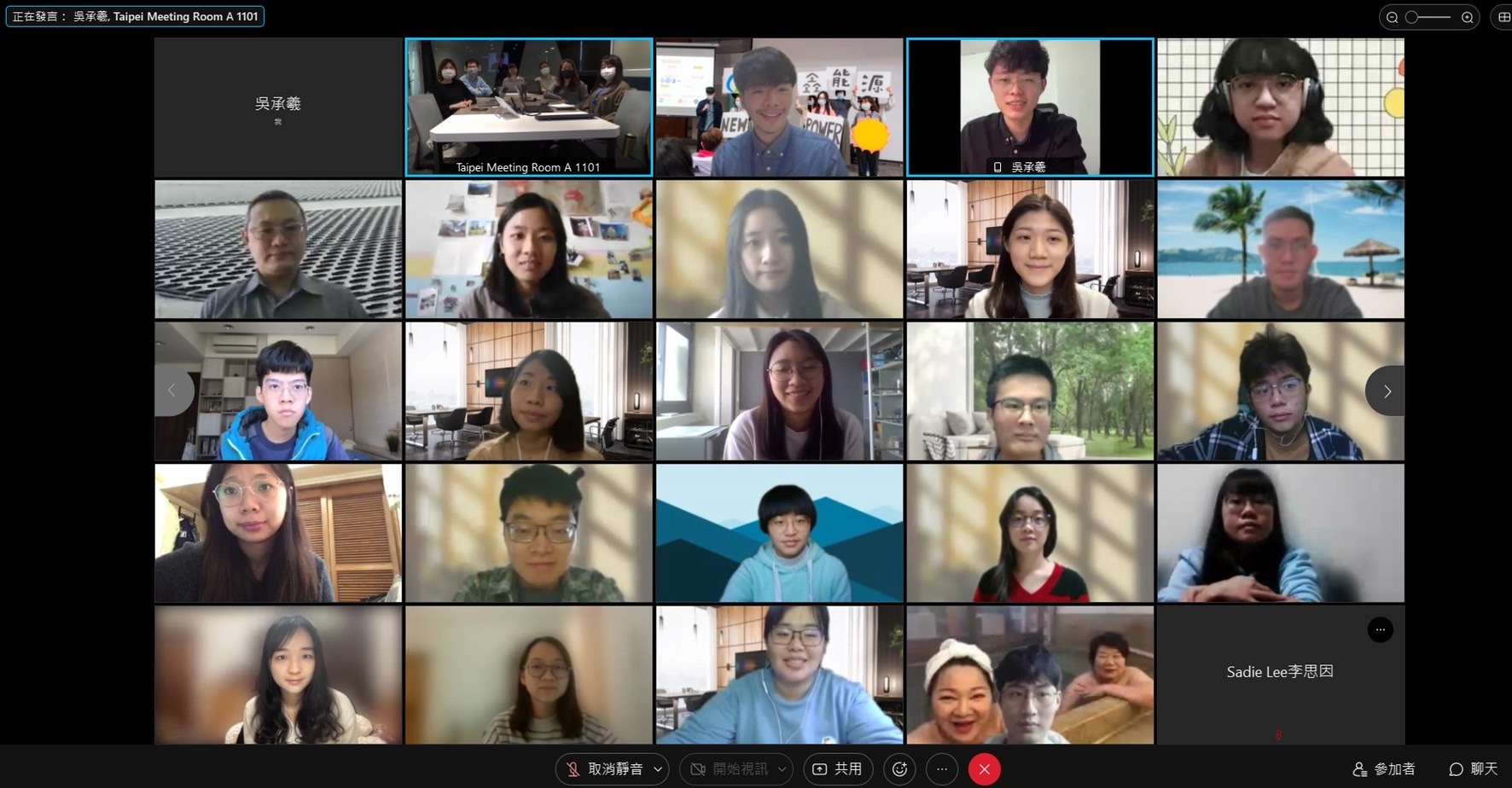 一月份參與完開幕式,與永鑫能源小組同學相見歡後,永鑫能源便依據同學的需求進行課程規劃。而在疫情升溫的時候,永鑫能源顧及同學健康狀況,將原先規劃的台北總部參訪調整為線上授課,除了讓同學認識各部門的工作職掌,也分享永鑫能源如何進行數位轉型,讓同學了解,在疫情時代,永鑫能源如何應用數位工具建立安全無虞又有效率的辦公環境及工作模式。課堂間永鑫能源透過視訊軟體由台北及台南辦公室還有WFH的同事,向在自家上課的同學進行課堂分享,課堂中分享了一站式服務、案場設計、電業許可、案場維運、數位轉型等,讓同學更熟悉再生能源產業。